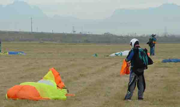 An unplanned emergency landing occurred when a paraglider who had a motor attached to his back had his propeller snap.