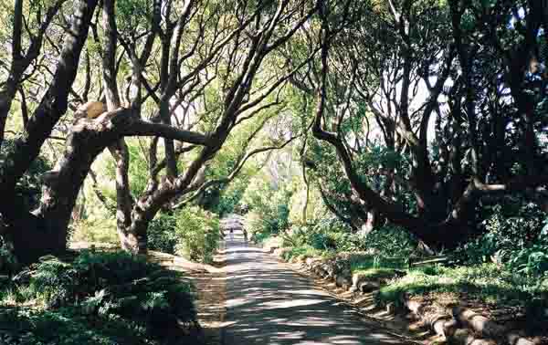 A tree lined lane leading to the concert area in Kirstenbosch